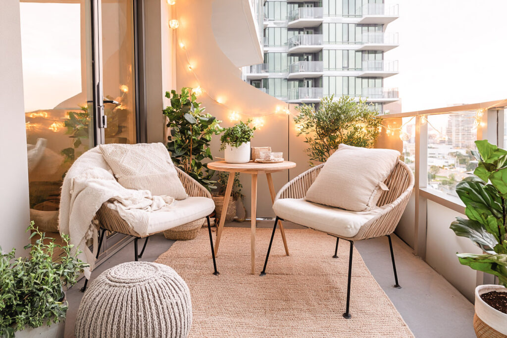 That warmer light helps pale cushions, wood tones, and natural textures feel richer and more inviting.