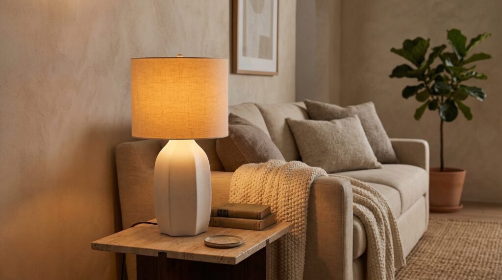 Warm light also helps beige, cream, taupe, and wood tones look richer. That glow is part of what makes a room feel cozy and polished instead of plain.